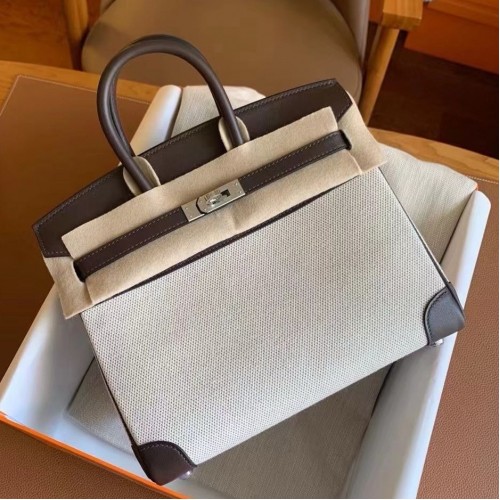 Tags: Hermes Birkin 25 Handmade Bag In Toile & Chocolat Swift Leather, hermes birkin 25,