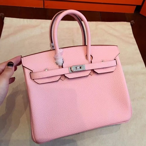 Hermes Pink Clemence Birkin 25cm Handmade Bag