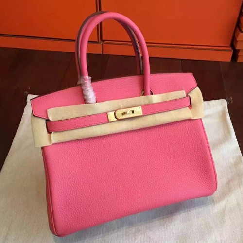 Hermes Rose Lipstick Clemence Birkin 25cm Handmade Bag