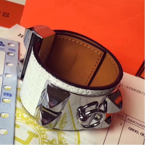 Hermes White Alligator Collier de Chien Bracelet Size S