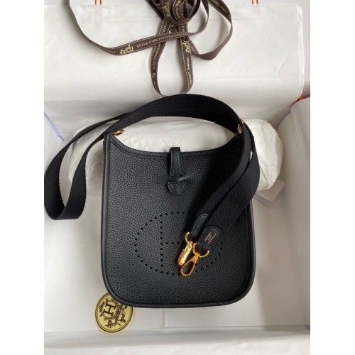 Hermes Evelyne Mini Handmade Bag in Black Clemence Leather
