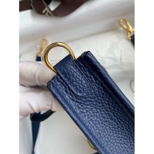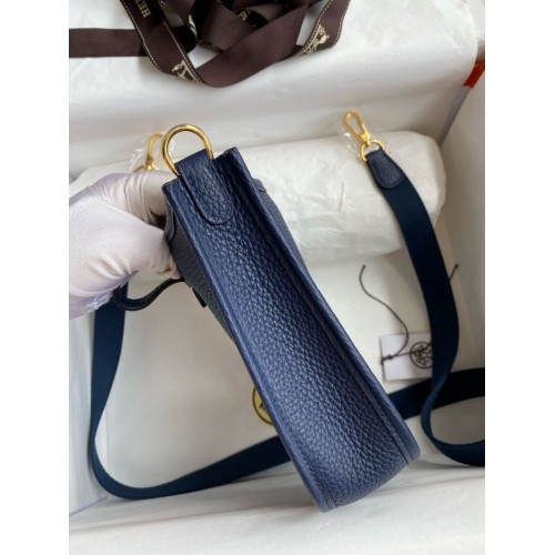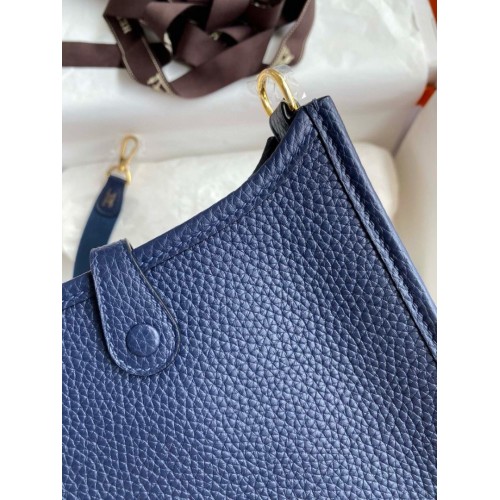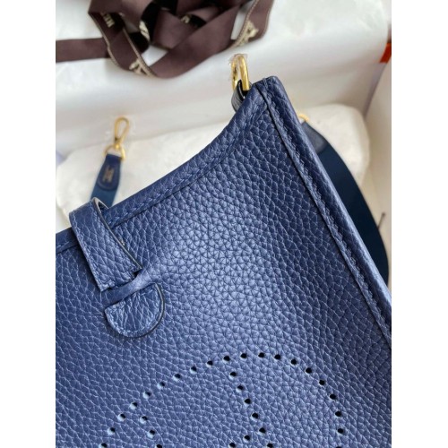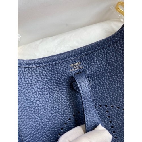 Hermes Evelyne Mini Handmade Bag in Blue Saphir Clemence Leather