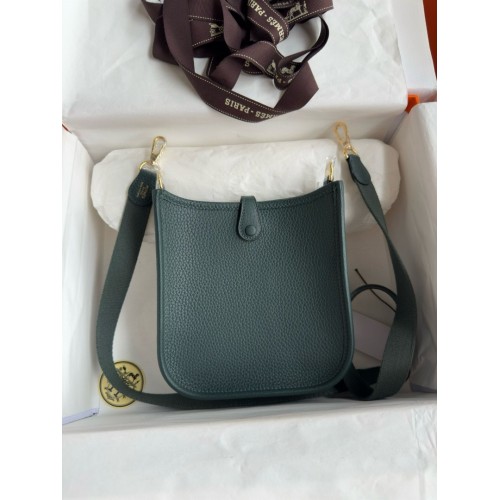 Hermes Evelyne Mini Handmade Bag in Vert Cypres Clemence Leather