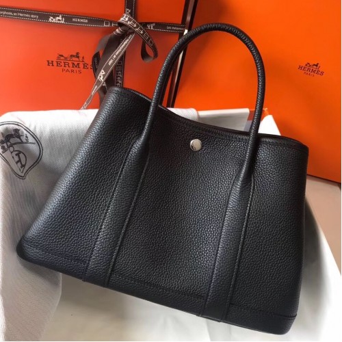 Hermes Black Clemence Garden Party 30cm Handmade Bag