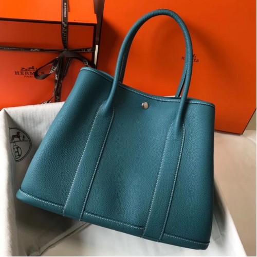 Hermes Garden Party 36 Bag In Blue Saphir Clemence Leather