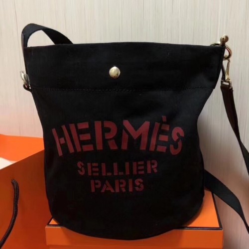 Hermes Grooming Bucket Bag In Black Canvas