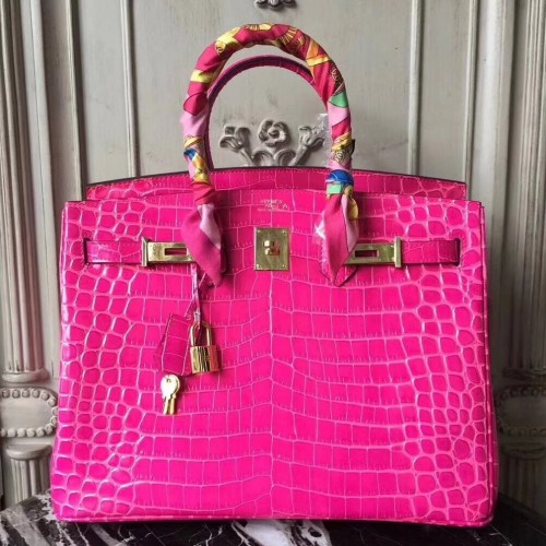 Hermes Birkin 30cm 35cm Bag In Fuchsia Crocodile Leather