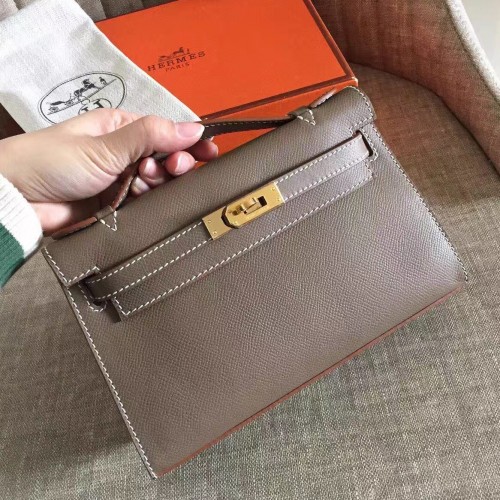 Hermes Etoupe Epsom Kelly Pochette Handmade Bag