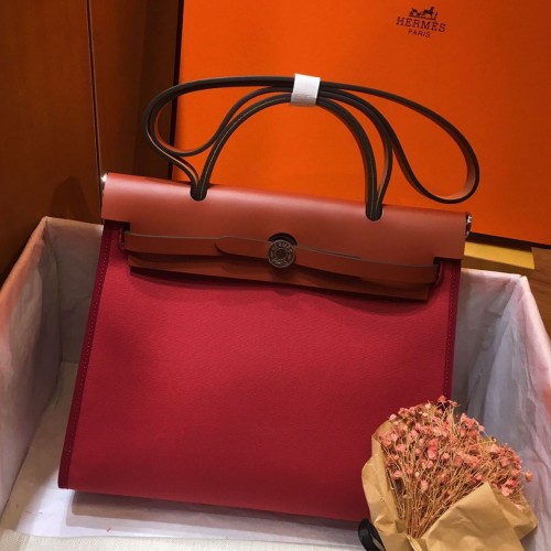 Hermes Herbag Zip 31cm Bag In Brown And Red