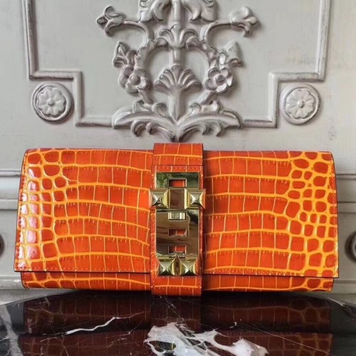 Hermes Medor Clutch Bag In Orange Crocodile Leather
