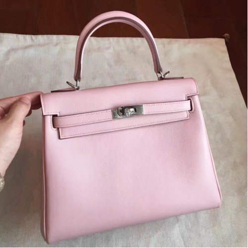 Hermes Rose Dragee Swift Kelly 25cm Retourne Handmade Bag