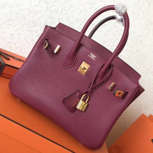 Hermes Ruby Clemence Birkin 25cm Handmade Bag