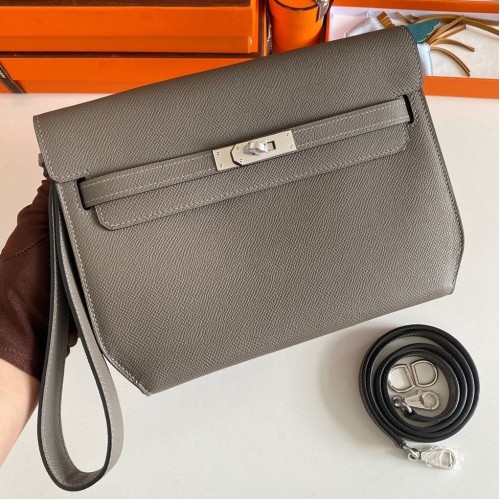 Hermes Kelly Depeches 25 Pouch in Etain Epsom Calfskin