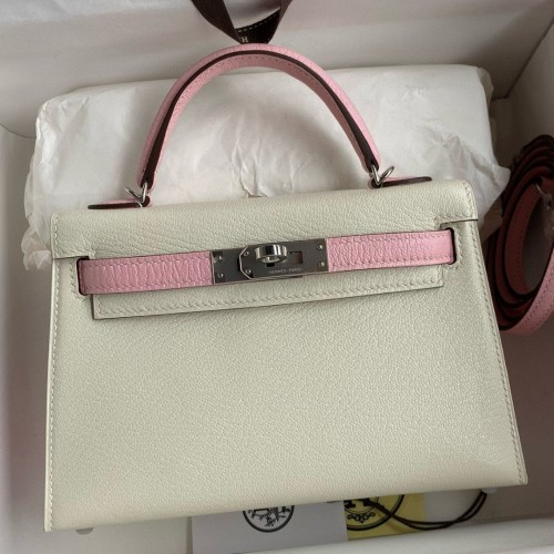 Hermes Kelly Mini II Sellier Bicolor Handmade Bag in Rose Sakura and Nata Chevre Mysore Leather