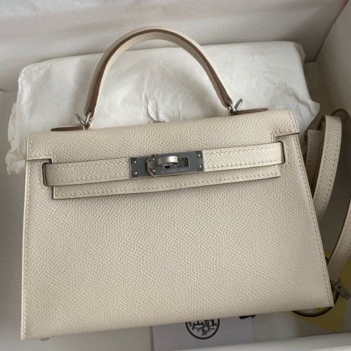 Tags: Hermes Kelly Mini II Verso Sellier Handmade Bag in Craie Epsom Calfskin, Kelly 20cm