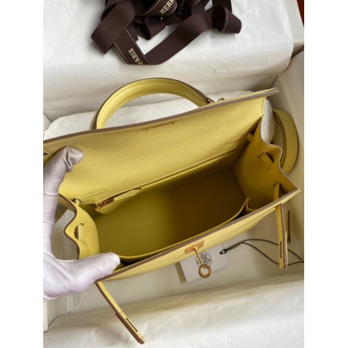 Hermes Kelly Sellier 25cm Handmade Bag In Jaune Poussin Epsom Calfskin