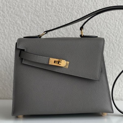 Hermes Kelly En Desordre 20 Handmade Bag In Etain Epsom Calfskin