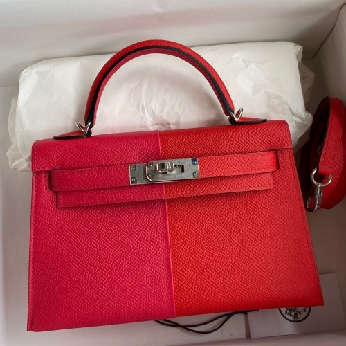 Tags: Hermes Kelly Mini II Sellier Tri-color Bag In Red/Rose Extreme/Blue Epsom Calfskin, ,
