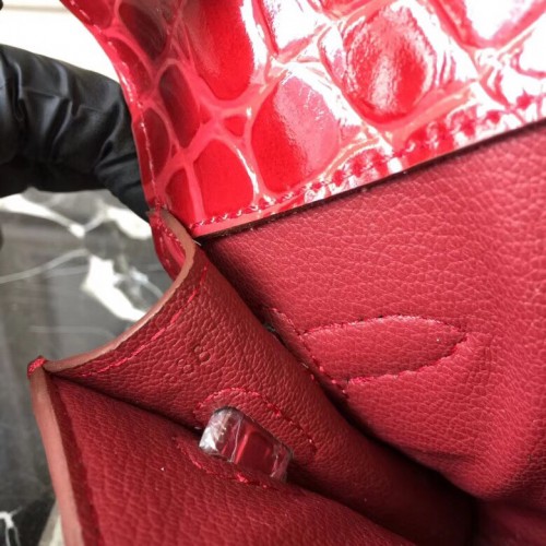 Hermes Cherry Crocodile Kelly Cut Clutch Bag