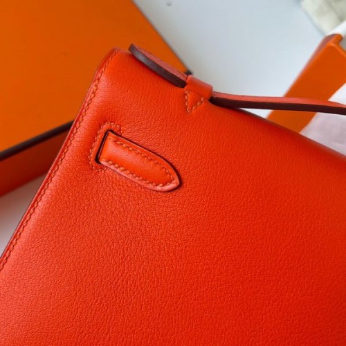 Hermes Kelly Pochette Handmade Bag In Rouge Piment Swift Calfskin