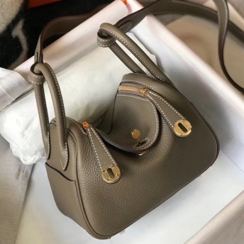 Hermes Mini Lindy Bag In Taupe Clemence Leather