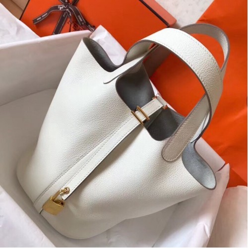 Hermes White Picotin Lock MM 22cm Handmade Bag