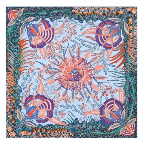 Hermes Blue Flowers of South Africa Silk Scarf