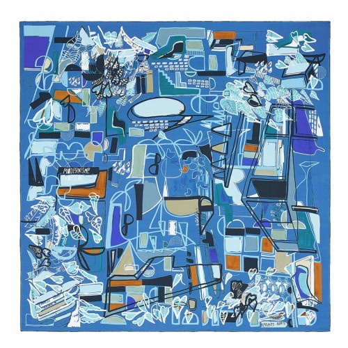 Hermes Blue Modernisme Tropical Scarf 140cm
