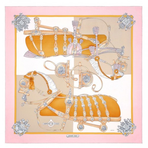 Hermes Pink Harnais De Cour Scarf 90