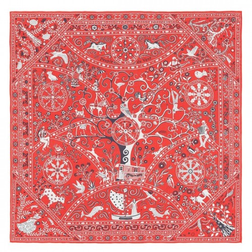 Hermes Red Peuple du Vent Bandana Shawl
