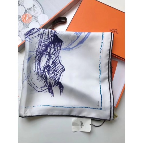 Hermes Cobalt Ex-Libris Coloriage Silk Shawl