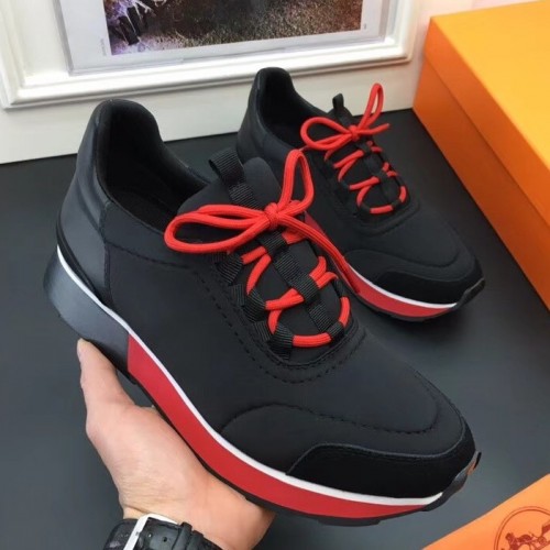Hermes technical canvas, calfskin and suede goatskin Miles sneakers with tapered rubber sole, foam a..