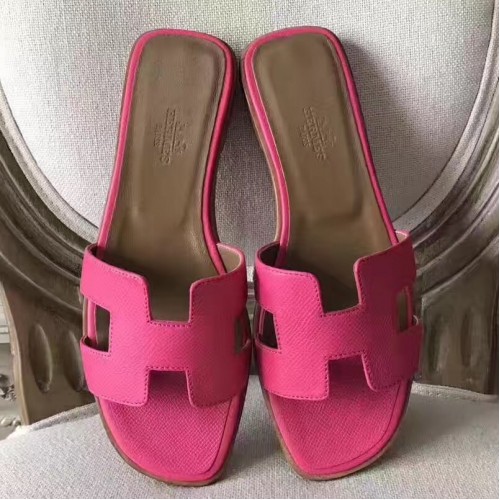 Hermes Oran Sandals In Rose Azalee Epsom Leather