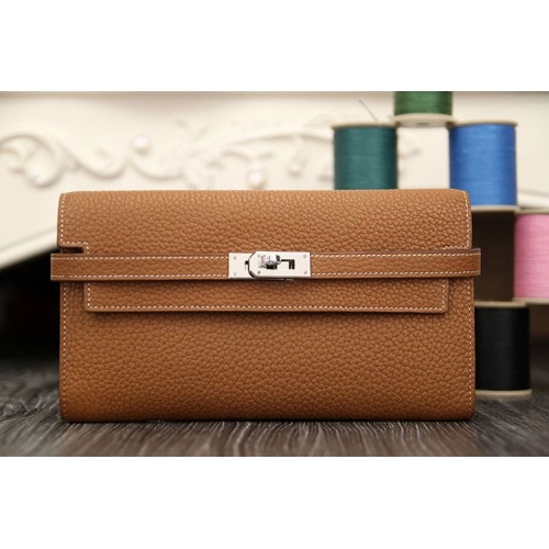 Hermes Kelly Longue Wallet In Brown Clemence Leather