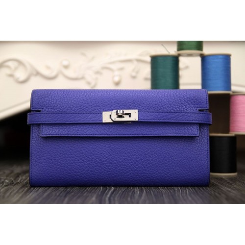 Hermes Kelly Longue Wallet In Electric Blue Clemence Leather