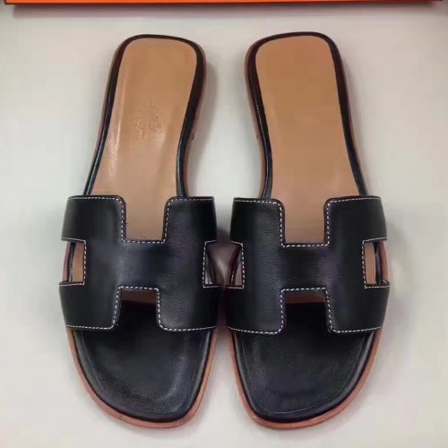 Hermes Oran Sandals In Black Swift Leather