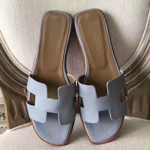 Hermes Oran Sandals In Blue Lin Epsom Leather